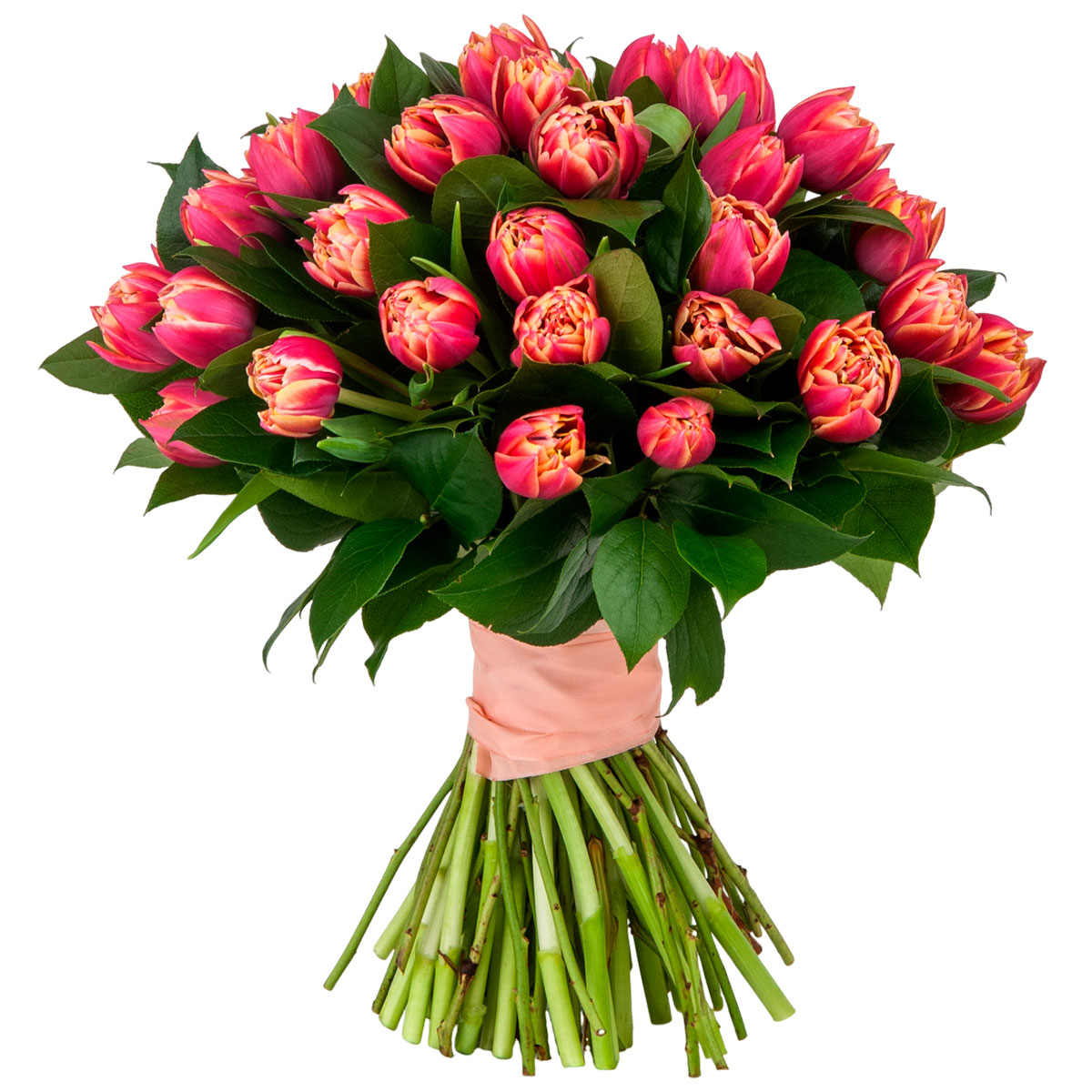 Тюльпан розовый. Упаковка (лента, пленка, крафт, сетка, пленка матовая)