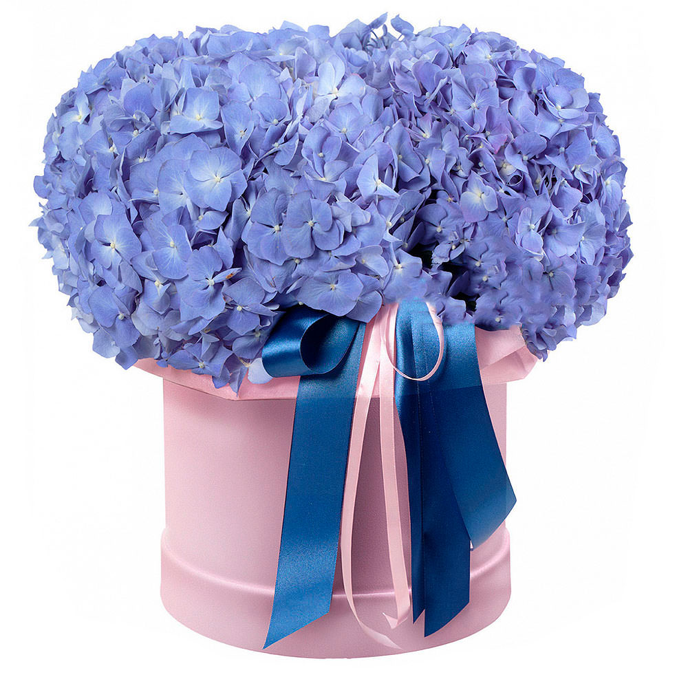 Гортензия. Упаковка (шляпная коробка, квадратный бокс, коробка сердце, оазис)