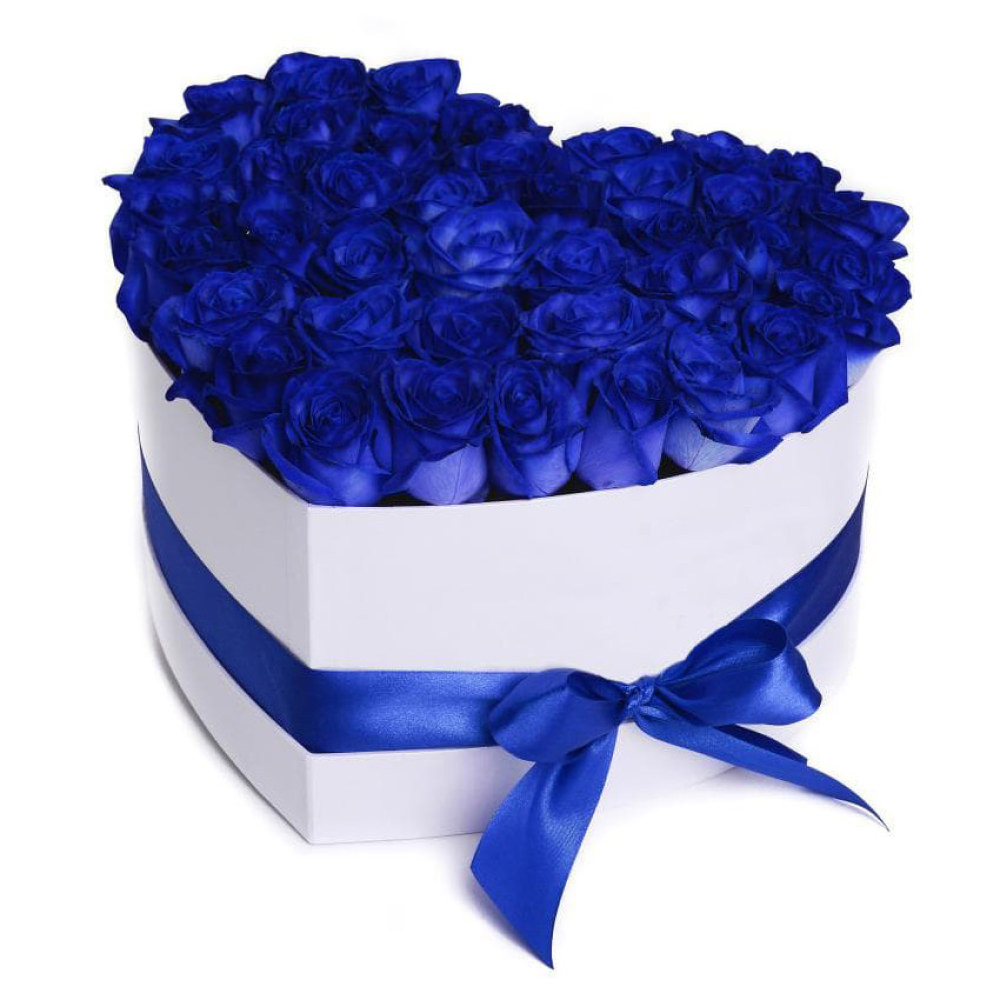 Цветы в коробке «Синее сердце» с доставкой по г Звенигово: вы можете заказать букет в цветочном гипермаркете «Флормания» по цене от 3190 руб.