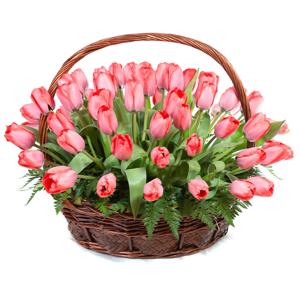 Цветы в корзинке «Розовые тюльпаны» с доставкой по г Звенигово: вы можете купить букет в интернет-магазине цветов «Флормания» по цене от 3490 руб.