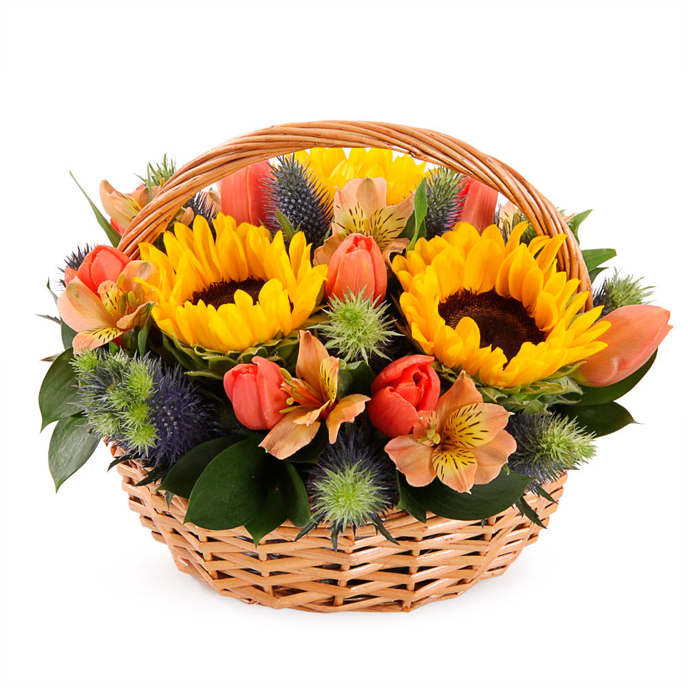 Цветы в корзинке «Солнечный день» с доставкой по г Звенигово: вы можете купить букет в интернет-салоне цветов «Флормания» по цене от 3490 руб.