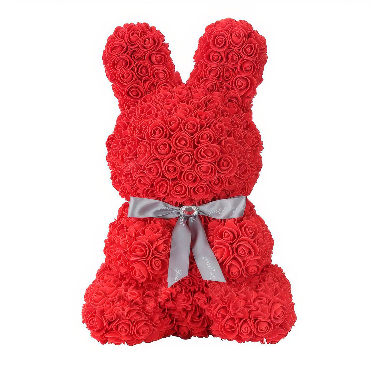 Заяц из роз красный — созданный из более чем 500 великолепных 3D розочек.